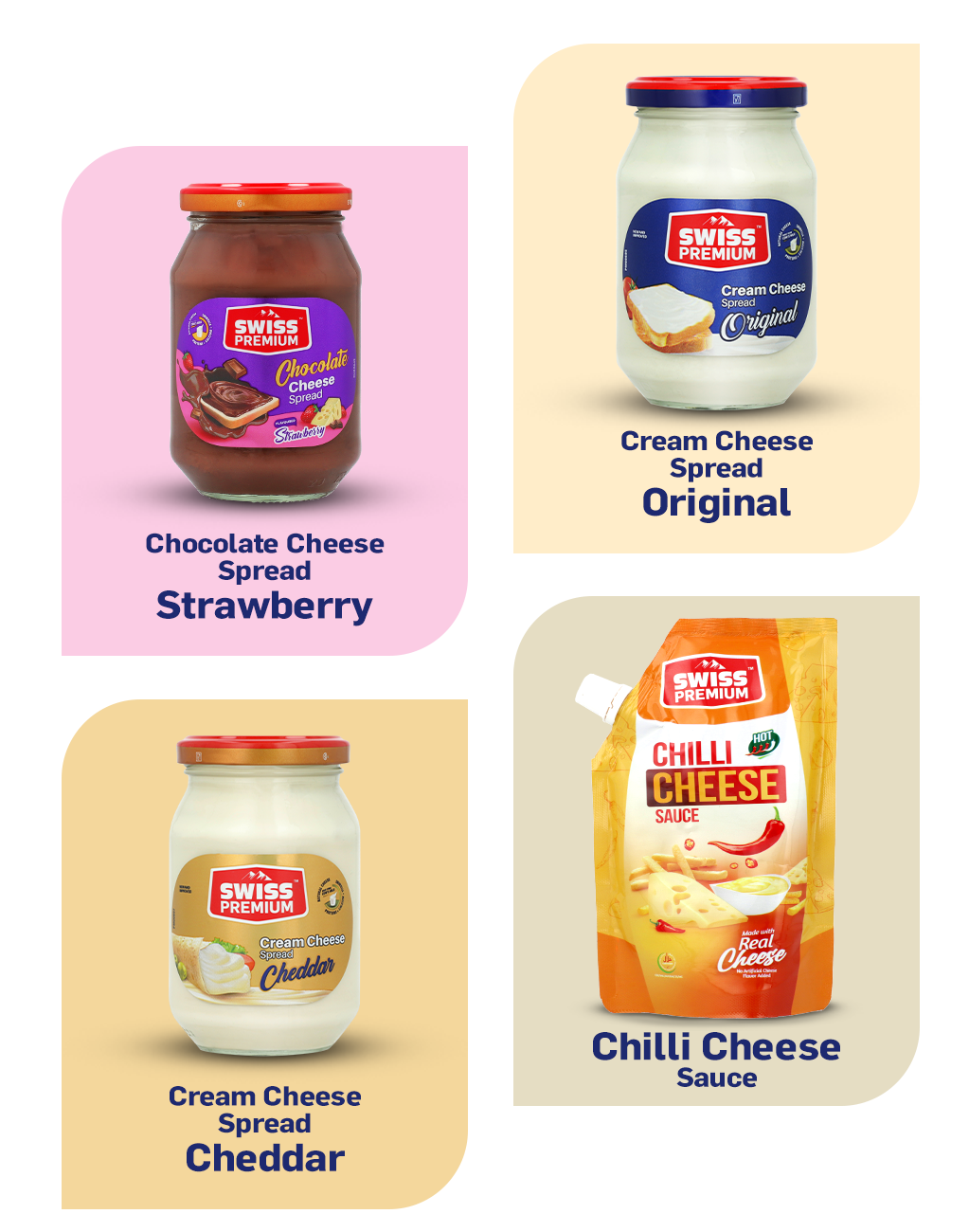 Discover Swiss Premium's best-sellers: creamy, cheesy, and irresistible. From cheddar delights to spicy sauces, these are the flavors that keep you craving for more. Taste the excellence that sets Swiss Premium apart.